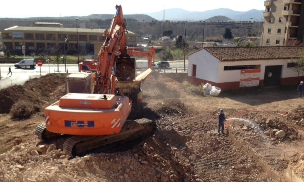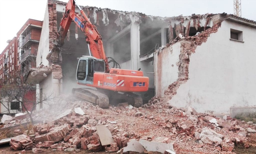 Previamente a la demolición, se efectuó la retirada y gestión de bajantes y la cubierta de un cobertizo anexo de fibrocemento con amianto, de acuerdo a la legislación
