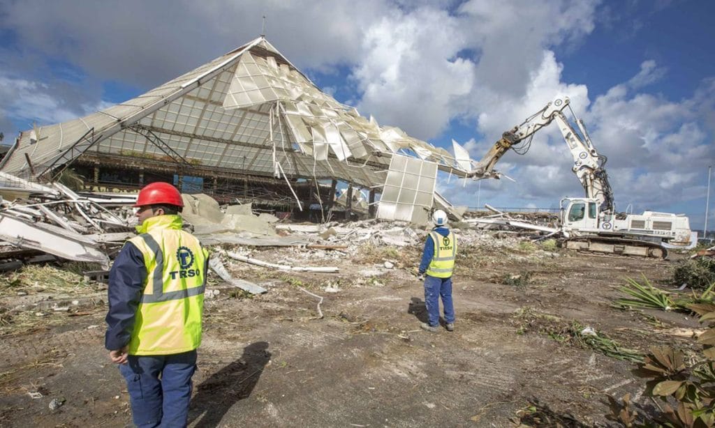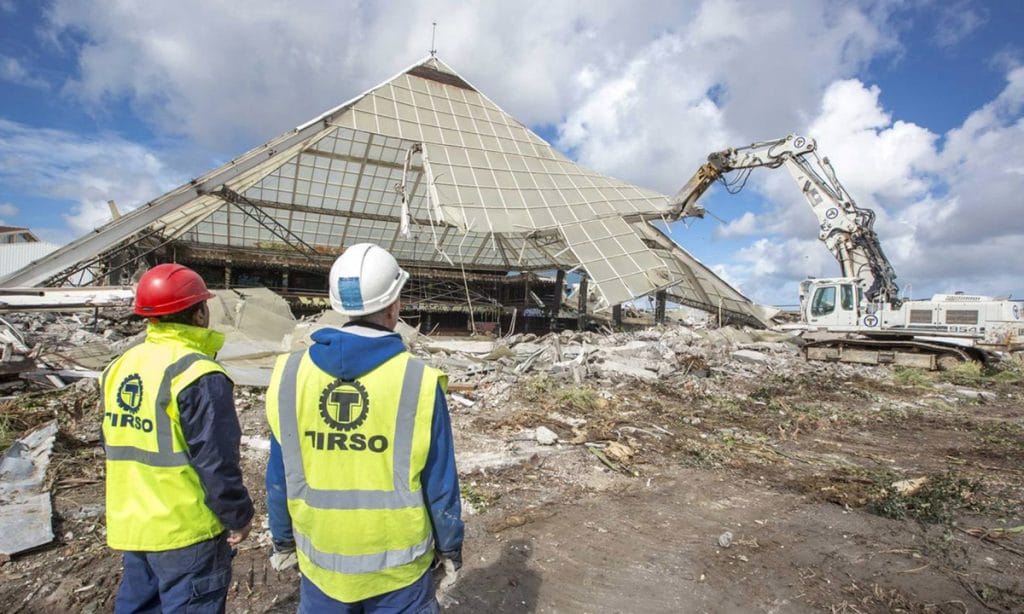 Por encargo de la empresa COMMERCIAL MARINE NORTH COAST, S.L, se realiza la demolición de la antigua discoteca AQUA. En el polígono industrial de Raos. Se trataba de una construcción realizada sobre estructura de hormigón, con muros interiores y pilares de hormigón armado, así como losa de cimentación. La parte más característica de la construcción era una pirámide de estructura metálica, de unos 25 m de altura y paneles de policarbonato.