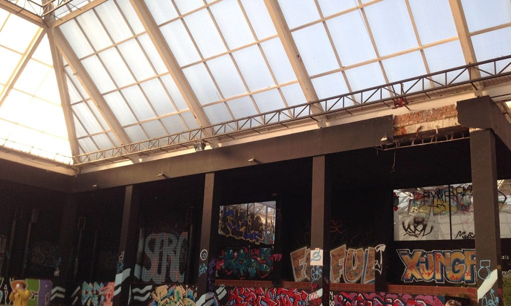 Previamente a la demolición mecánica, se ha realizado la retirada manual de residuos existentes dentro de la instalación (pladur, vidrio, basura, madera…).